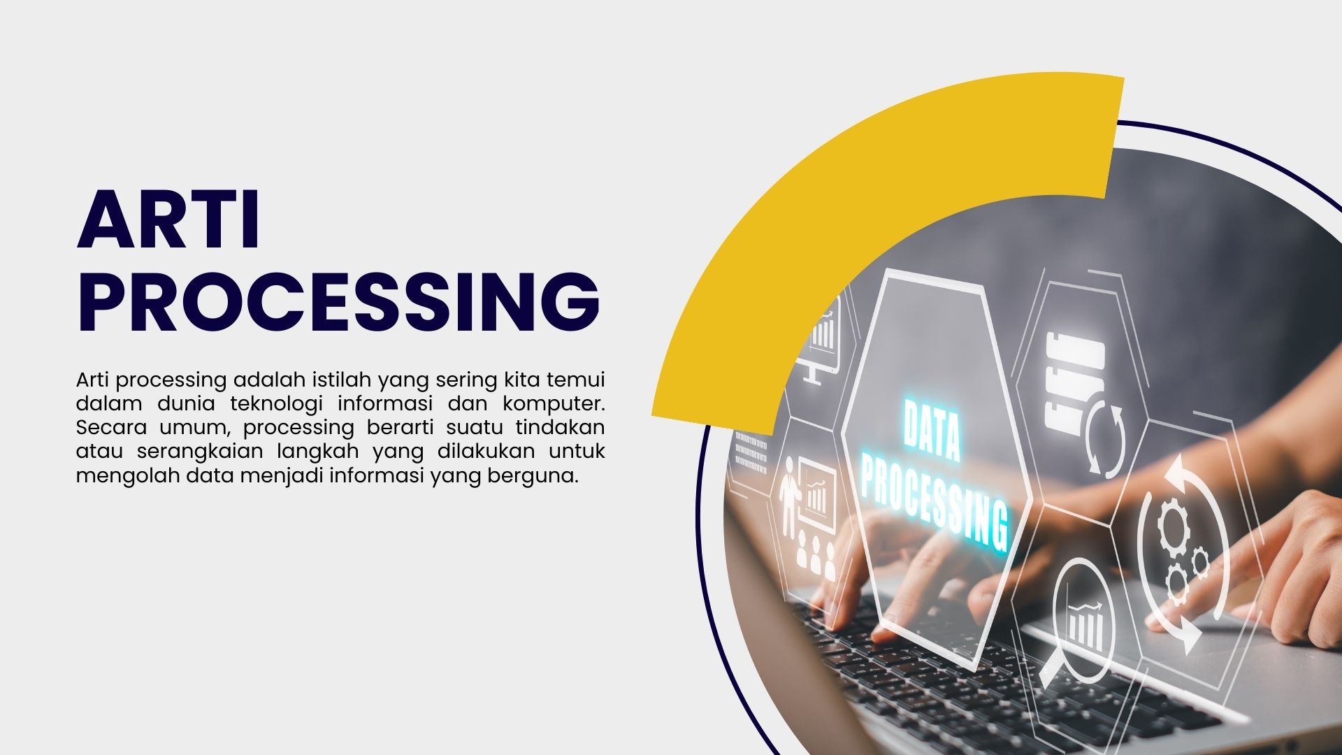 Secara harfiah, arti processing adalah “pengolahan”. Dalam konteks teknologi, processing mengacu pada serangkaian langkah atau prosedur yang dilakukan oleh perangkat lunak atau perangkat keras untuk memanipulasi data. Data yang diproses bisa dalam berbagai bentuk, seperti angka, teks, gambar, suara, dan video. Misalnya, ketika Anda mengklik tombol pada aplikasi atau situs web, komputer melakukan processing untuk merespons tindakan tersebut dan menampilkan hasil yang sesuai.